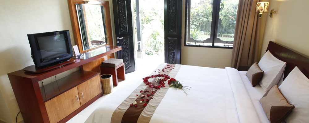 Deluxe cottage rooms at Yulia Village Inn feature a blend of modern and traditional Balinese furnishings. Fitted with tiled flooring, each room comes with air conditioning and a private bathroom. A private balcony overlooking garden/Ubud town is perfect for enjoying a drink or chat with your loved one.